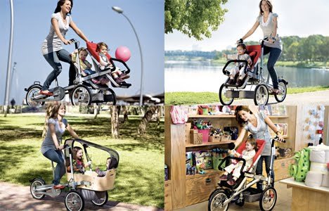 Amennyiben a képeken látható babakocsikat nem találjuk az első boltban, lehetőleg ne álljunk neki otthon összebarkácsolni a nagyobb gyerek gördeszkáját vagy biciklijét a babakocsival. 🙂